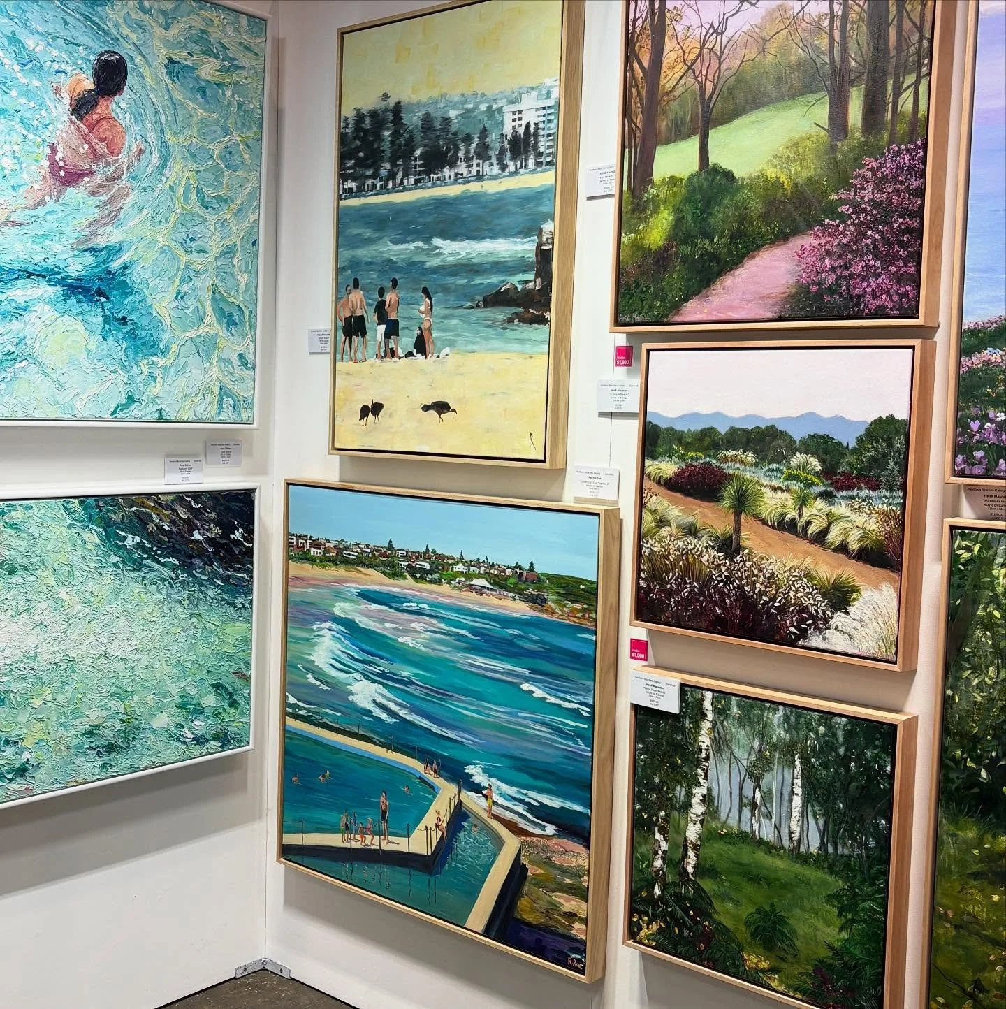 Bronte Coastwalk by Rachel Rae - The sun is shining, waves are crashing, water looks perfect for a swim - but unfortunately the beach is closed. But there are still some people swimming. Not worth the risk. Perhaps a swim in the pool instead. This original painting by Rachel Rae Art is painted in acrylic with a varnish on a deep stretched canvas, framed in Tasmanian Oak and is ready to hang.